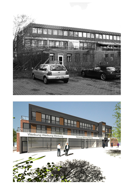 Büroneuplanung Harksheider Strasse Ort: Hamburg – Sasel Beschreibung: Bürohauserweiterung als Anbau mit Tiefgaragenerweiterung Bauvolumen: Nutzfläche 2.200 m² Planungsstand: LPH 1-4, Fertigstellung 2010