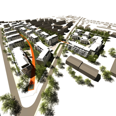 Quartierbebauung als Wohnanlage mit 554 Wohneinheiten